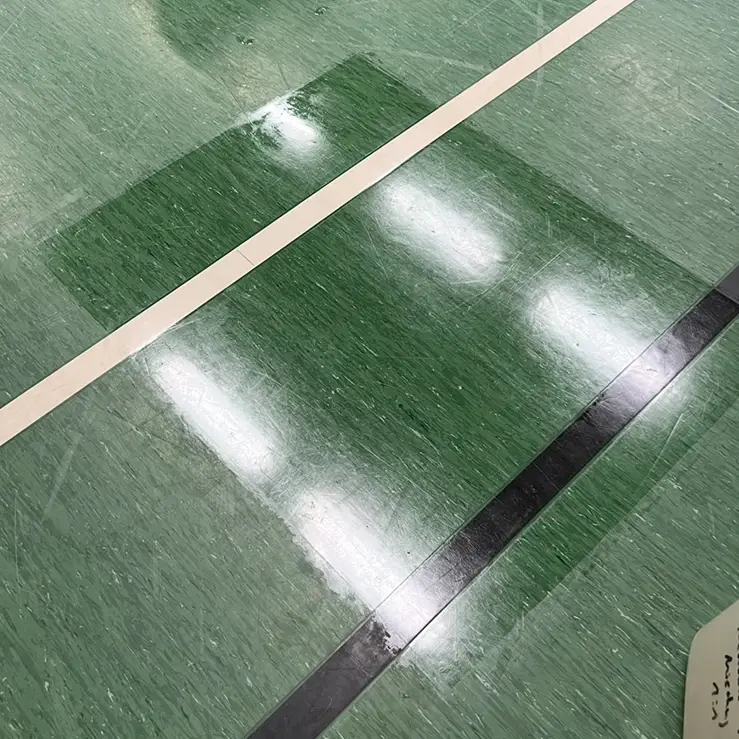 Sporthallenboden ohne und mit (siehe Quadrat) versiegelter Fläche.